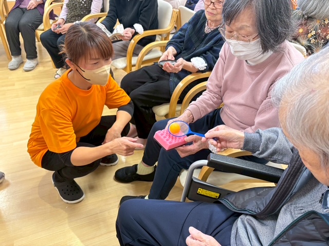 入居者様による玉入れにボールリレー。