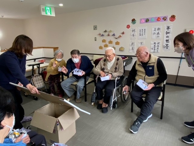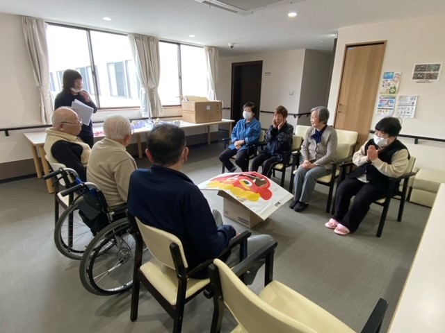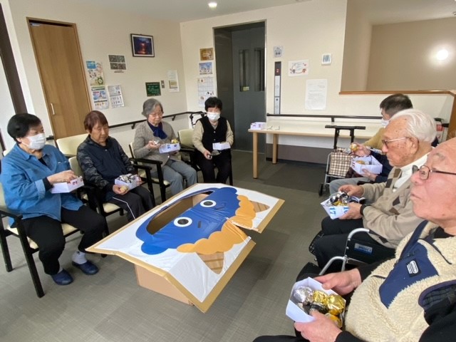 二月の節分にちなんで鬼の口へ玉入れをして頂いたり、