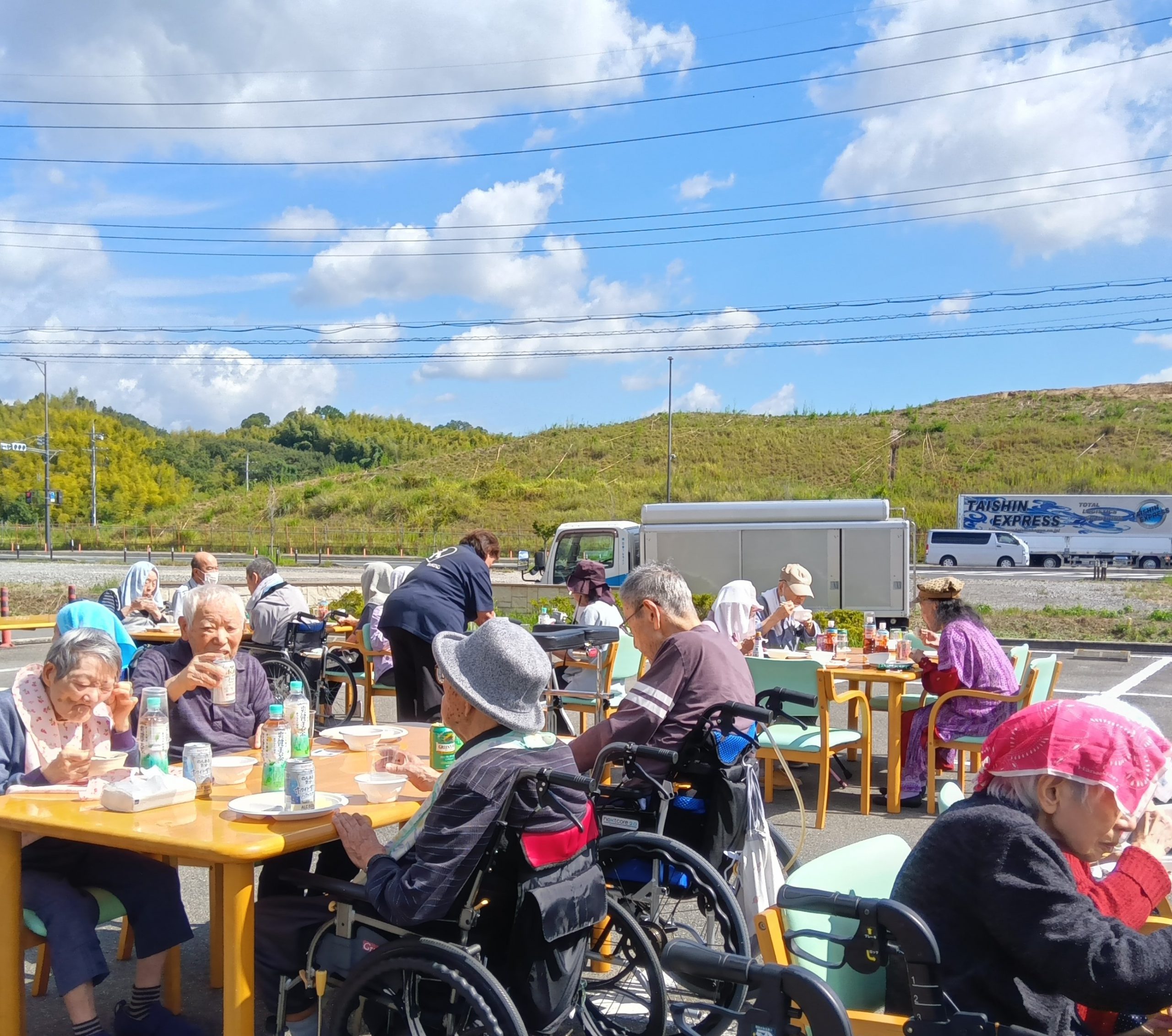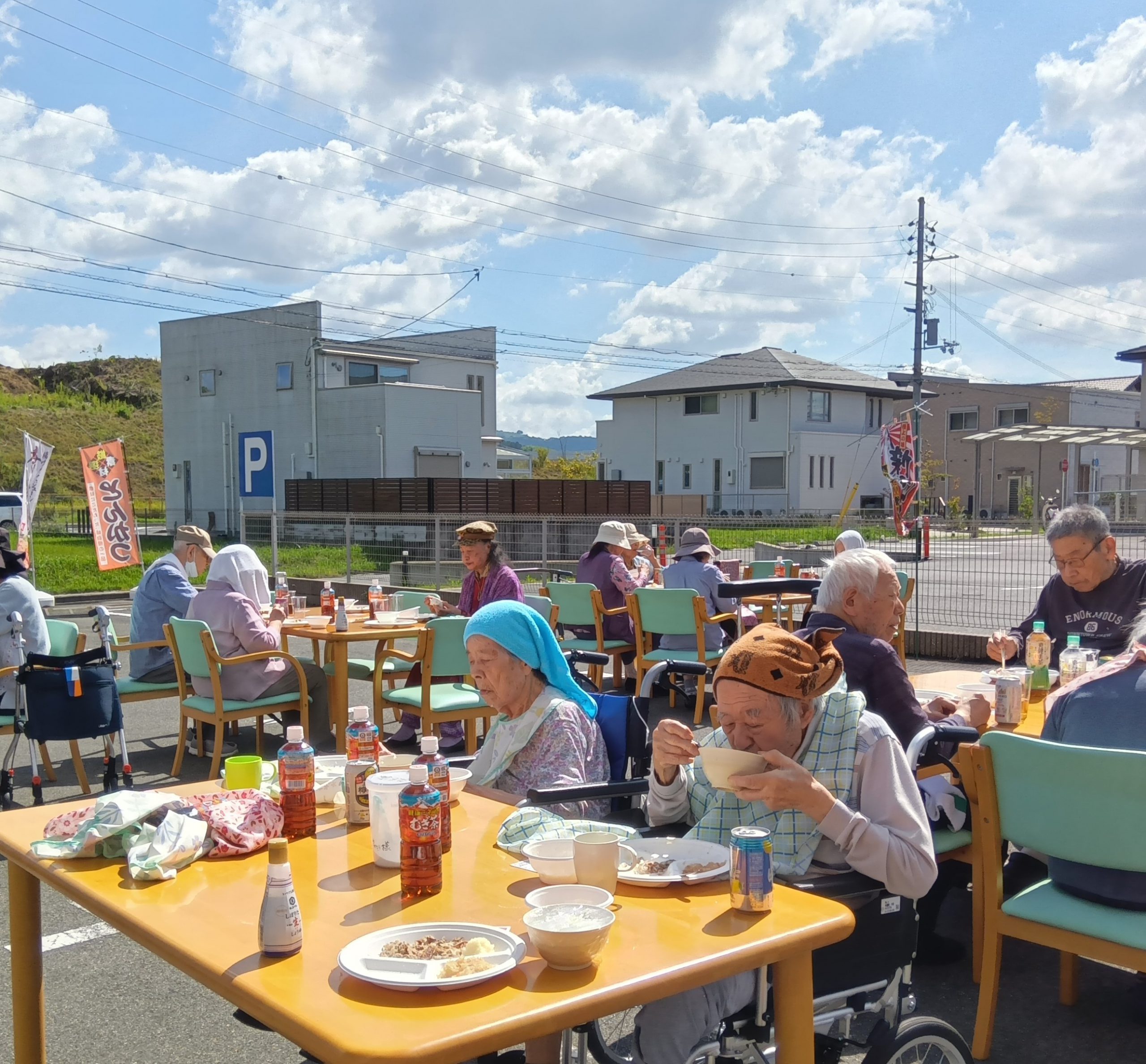 本日は、シニアハウス木津川と合同で、ご入居者様に野外で秋の味覚を楽しんでいただくイベントを行いました。