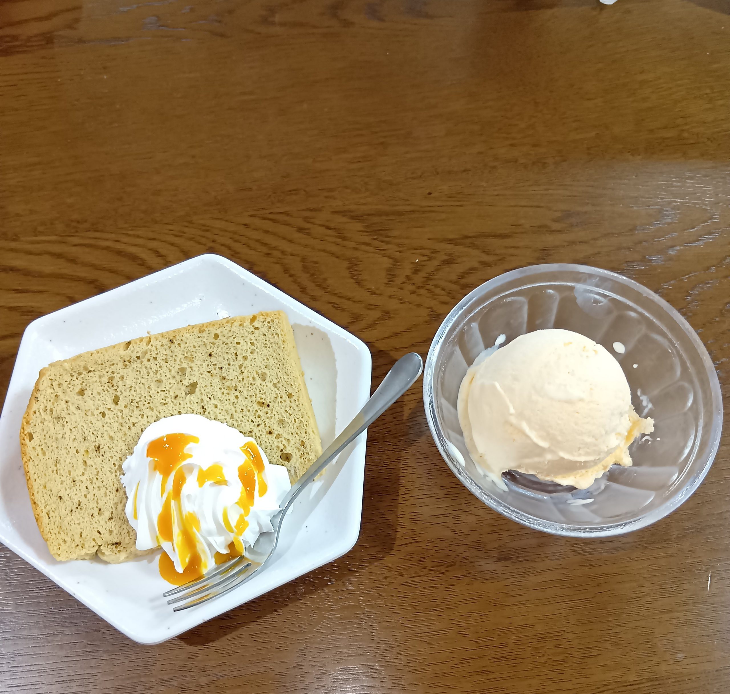 3時のおやつはシフォンケーキにホイップクリームみかんソース添え
